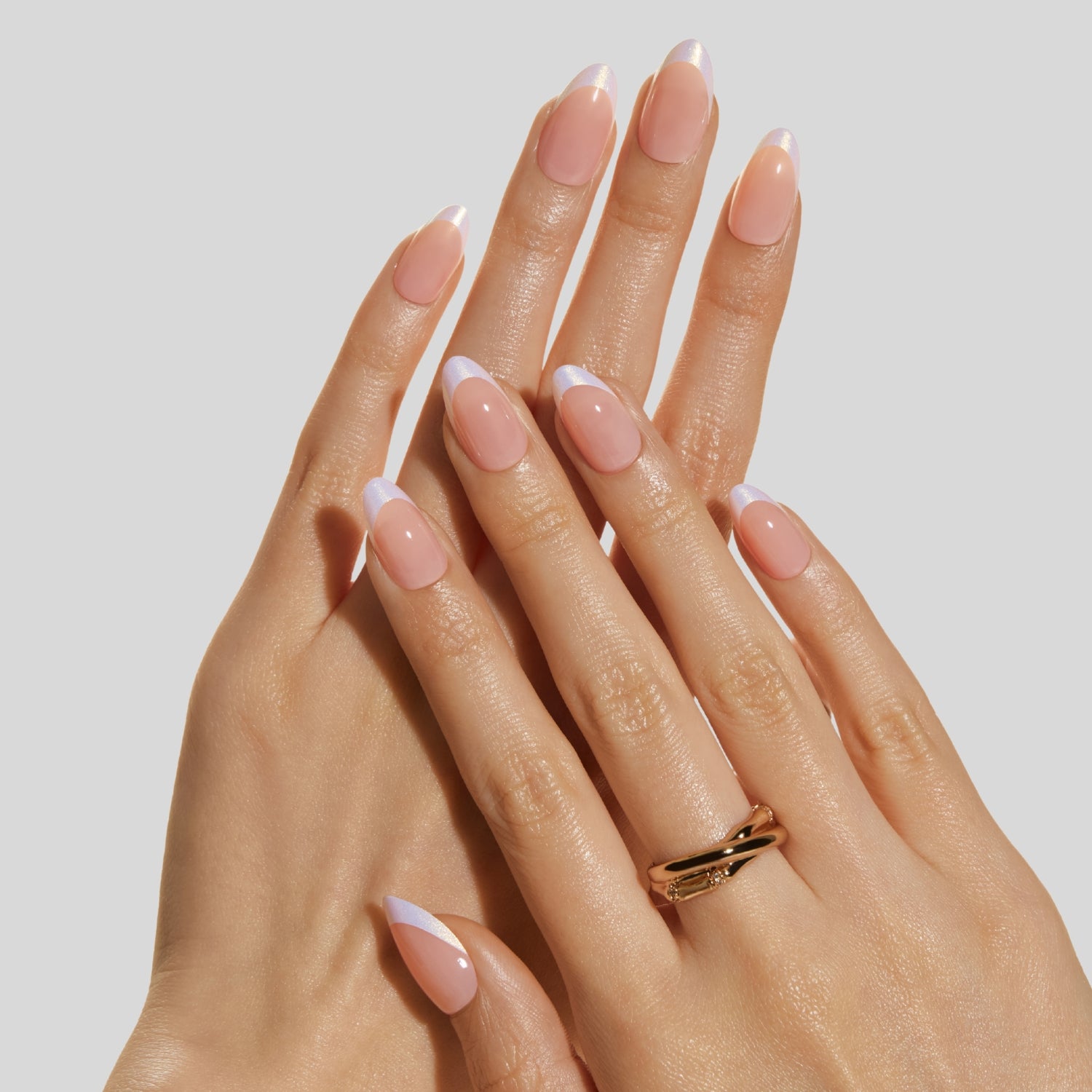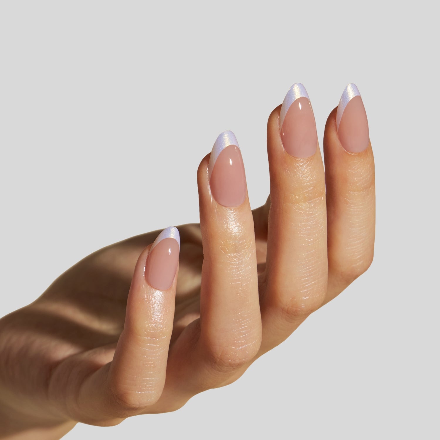 - Finish: Gel Shine + classic French tips with a subtle iridescent finish