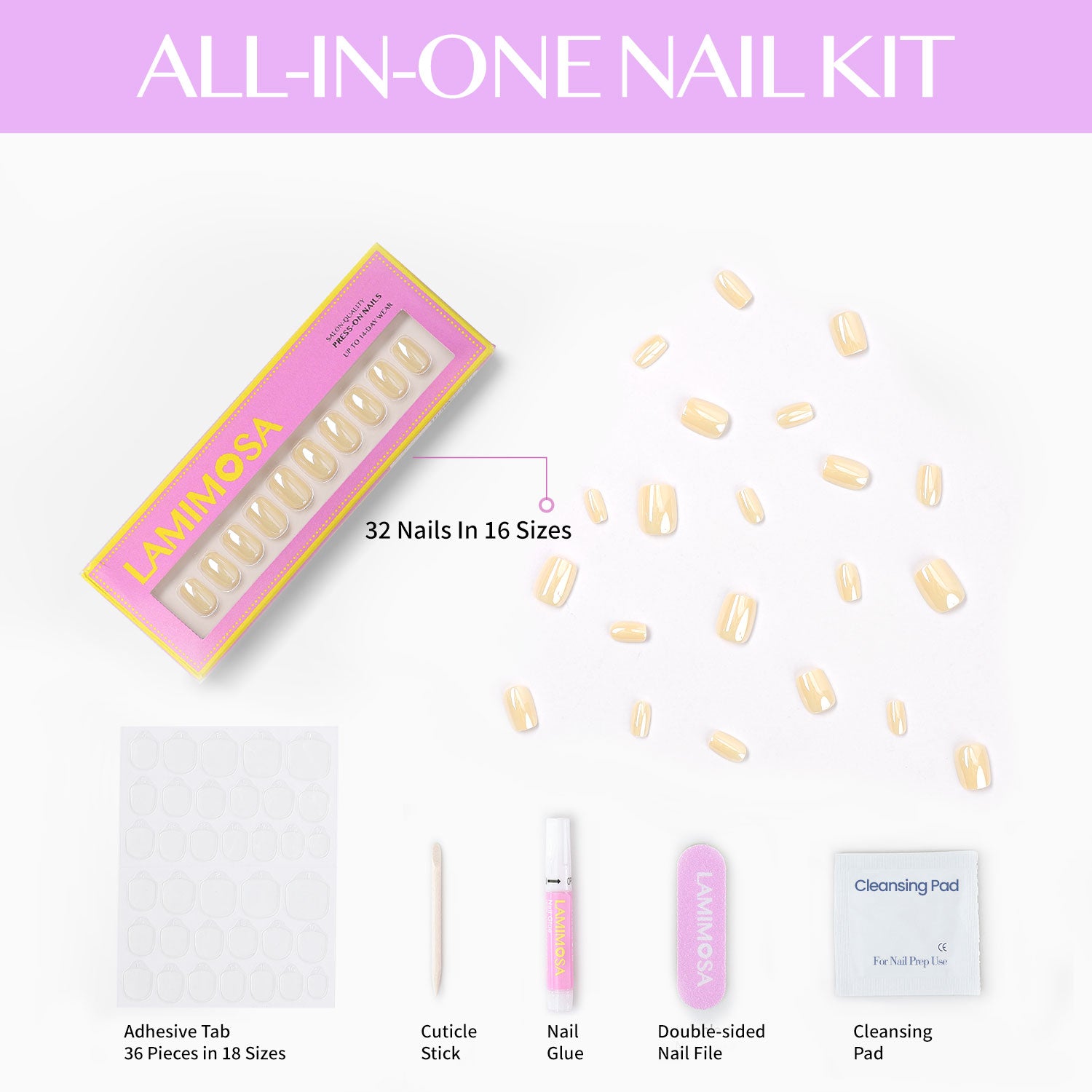 Sticky tabs peel off cleanly with no damage, making nails easy to reuse. For glue, soak in warm water with soap and oil for 10 minutes, gently lift off, and buff away residue to reuse.