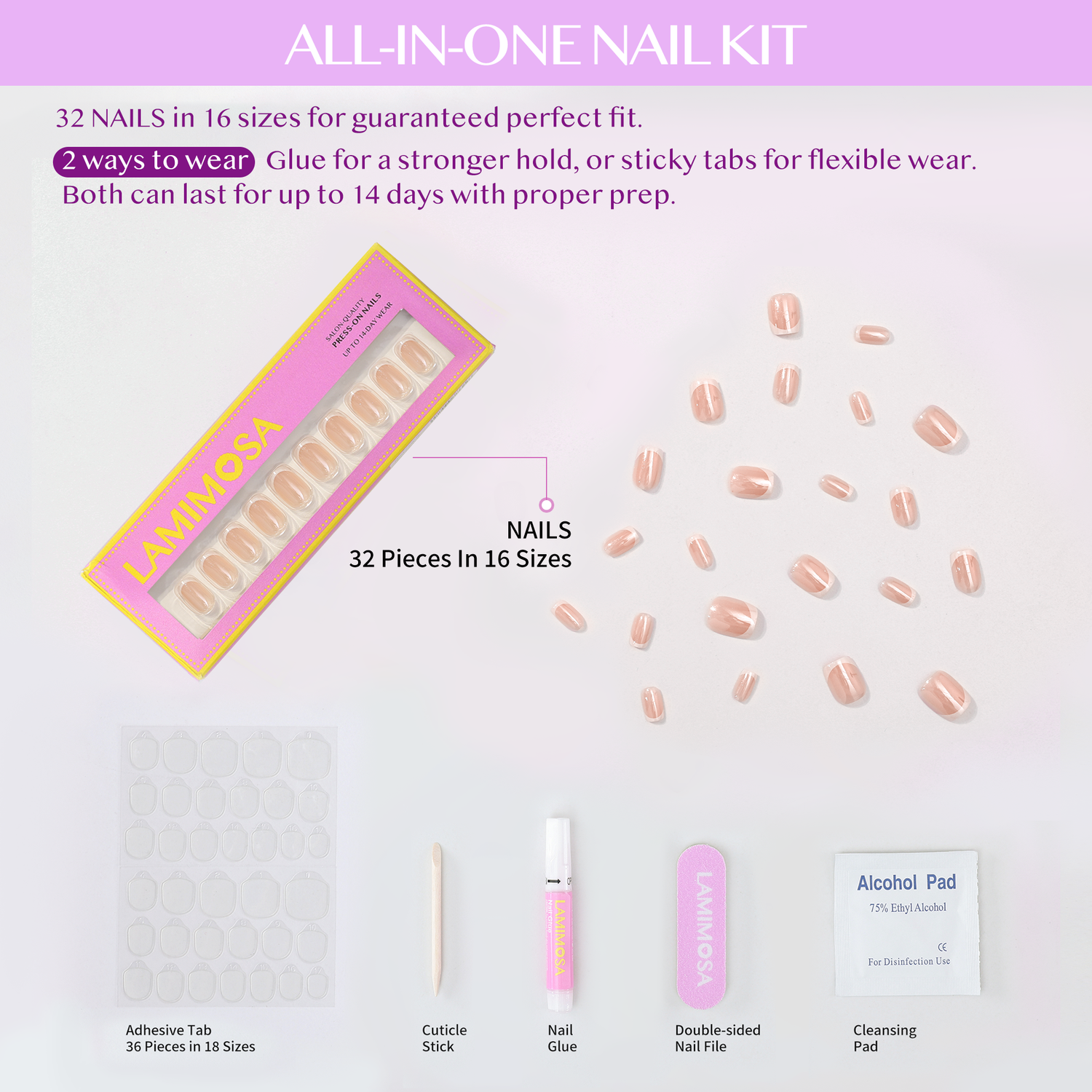 Wear up to 14 days with glue, switch styles anytime with sticky tabs, or combine both for extra hold. Pro tip: proper prep extends wear.