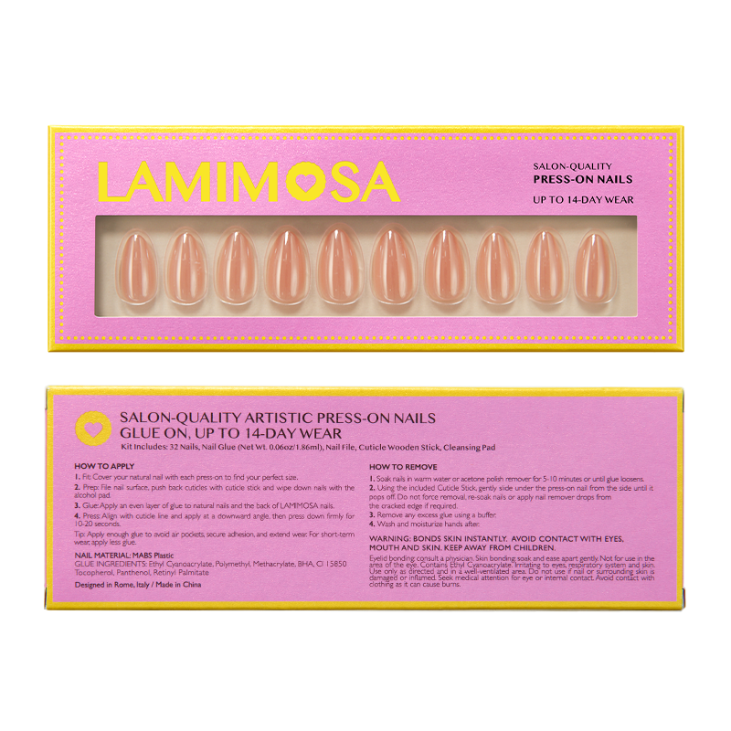 La forma a mandorla, attentamente progettata, garantisce eleganza e comfort per le attività quotidiane, inclusa la digitazione. Le unghie hanno uno spessore delicato di 0,3 mm alla radice per una vestibilità impeccabile, che aumenta gradualmente fino a 1 mm in punta per una maggiore durata.