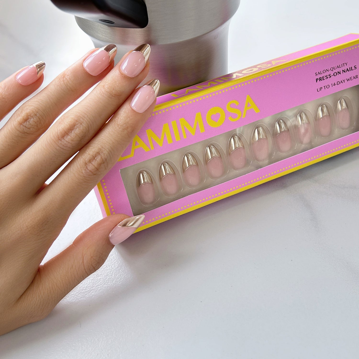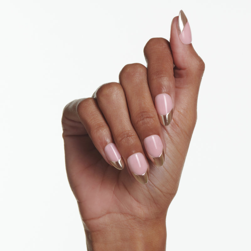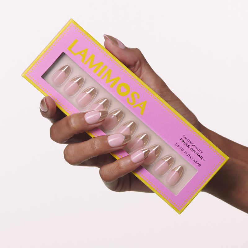 La classica punta francese entra nella sua epoca d'oro con il nostro design "Gold Blessed", in cui un effetto laminato oro impreziosisce le punte, conferendole un aspetto glamour e cool.