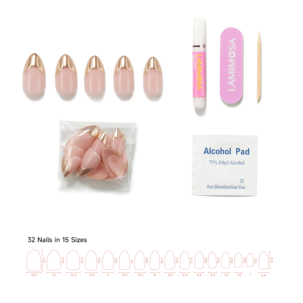 They are beautiful, and the results look amazing! This design is truly classic and elegant. From opening the box to finishing a full set, it only took me 20 minutes. Lamimosa doesn’t have specific sizes, but with 16 different sizes and 32 nails in total, it was absolutely perfect for me!