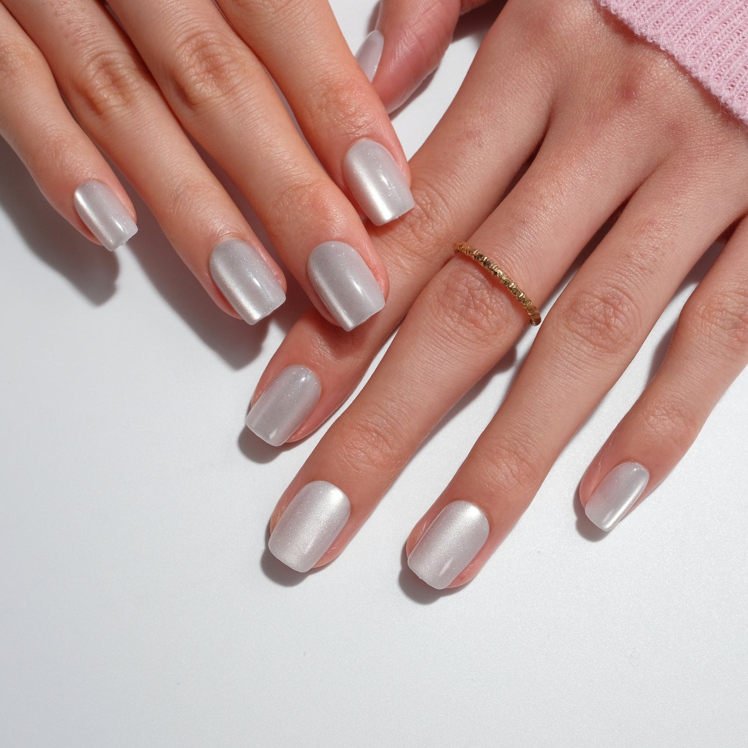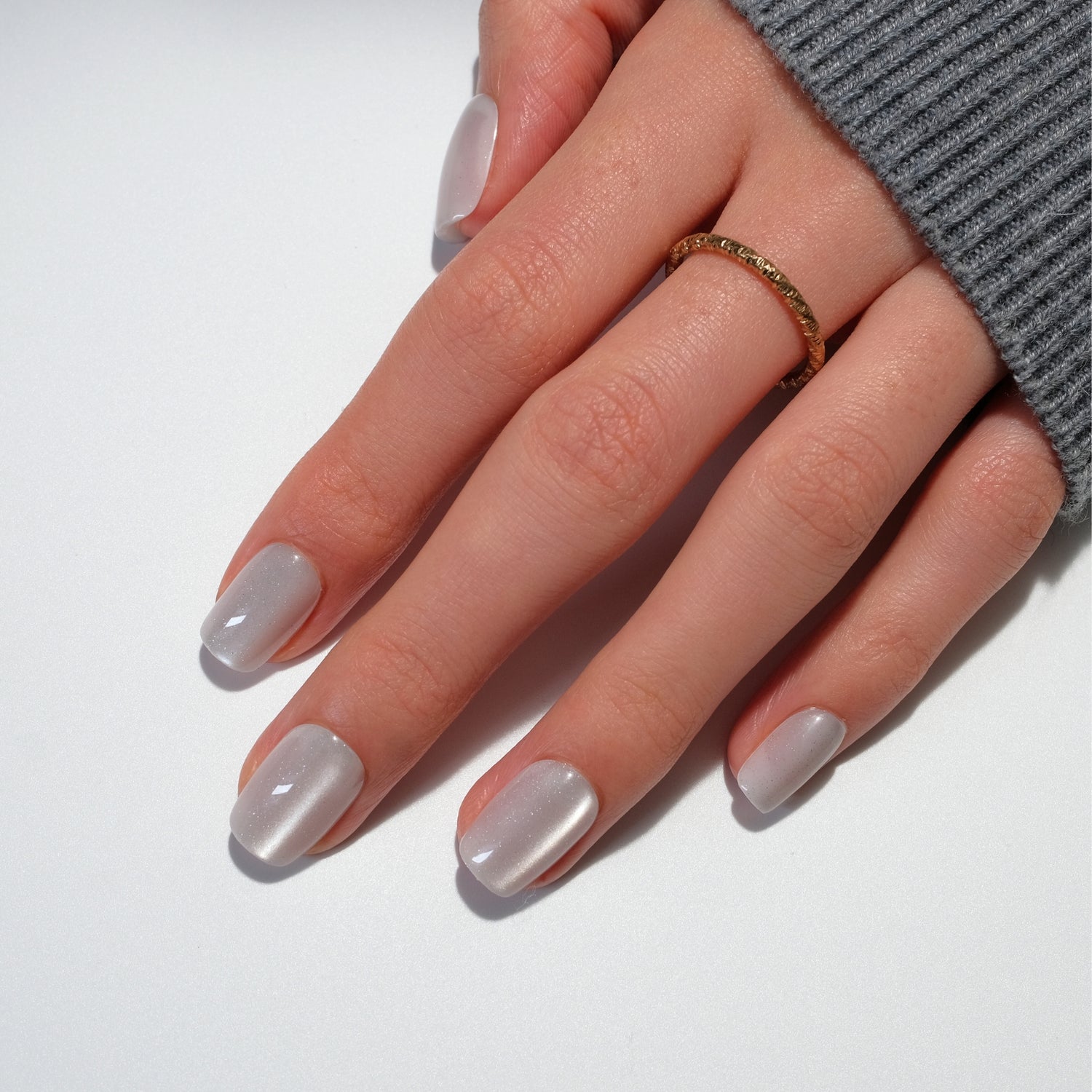I actually love how thin they are — they feel lightweight and sit close to the nail bed, which makes them look more natural. The white cat-eye effect is really pretty in person, with a soft shimmer that catches the light without being over the top. Overall, they look clean, polished, and easy to wear.