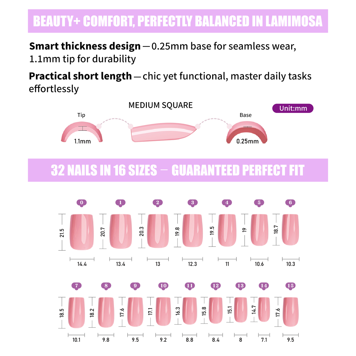 Each set includes 16 sizes - just match each finger and file if needed. We make it easy to find your perfect fit.