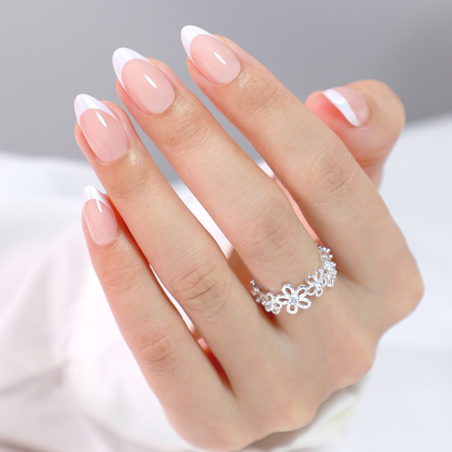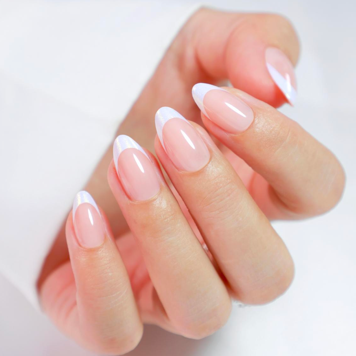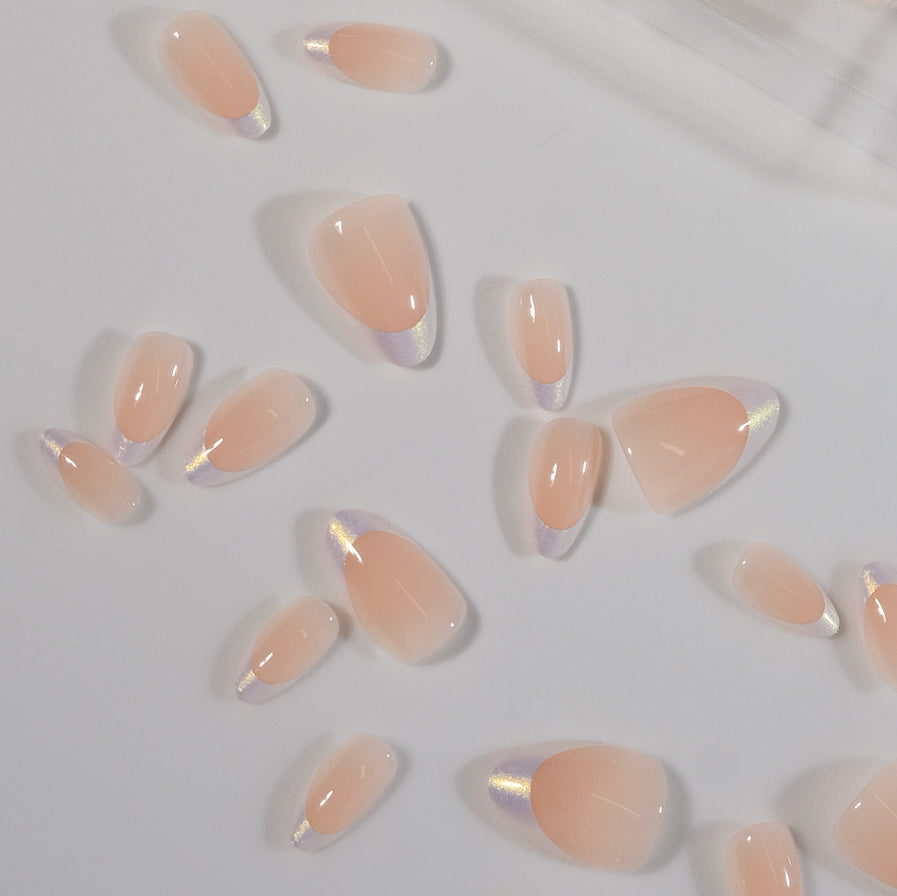 • Finish: Gel Shine + classic French tips with a subtle iridescent finish