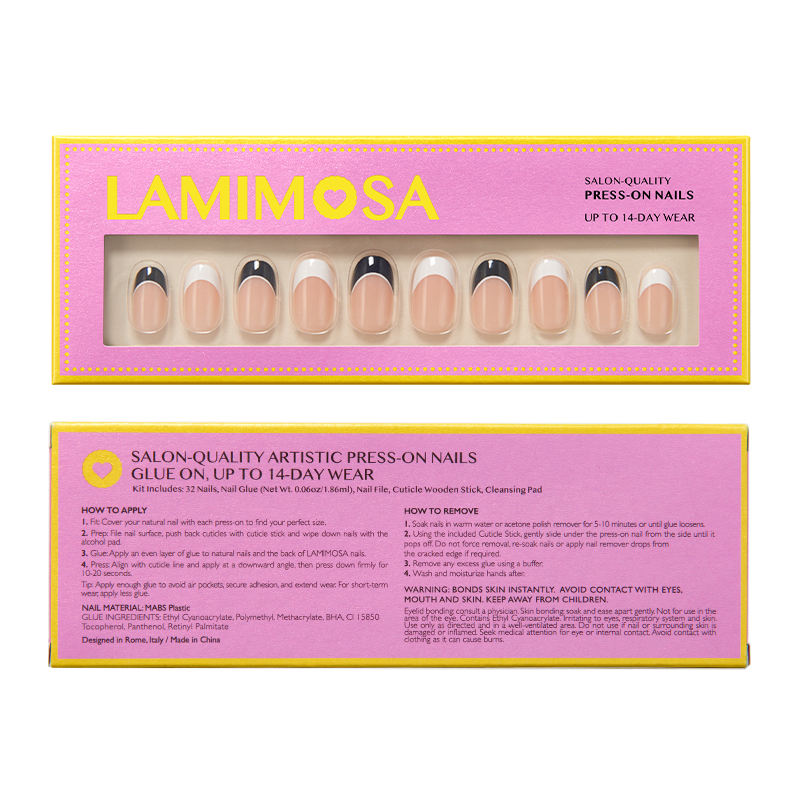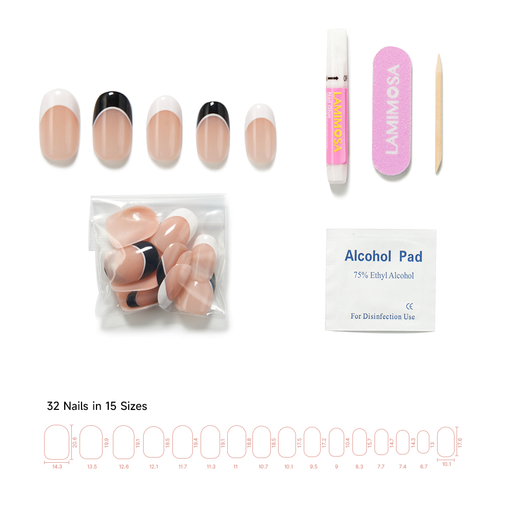 A fusion of the two most classic French tip designs, BLACK N WHITE provides versatile styling options. Opt for one hand with a sleek white tip, the other adorned with a bold black tip. Or mix them creatively like a piano keyboard. Classic, yet cool and fun for any occasion!