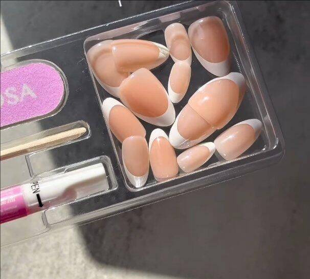 Sticky tabs peel off cleanly with no damage, making nails easy to reuse. For glue, soak in warm water with soap and oil for 10 minutes, gently lift off, and buff away residue to reuse.