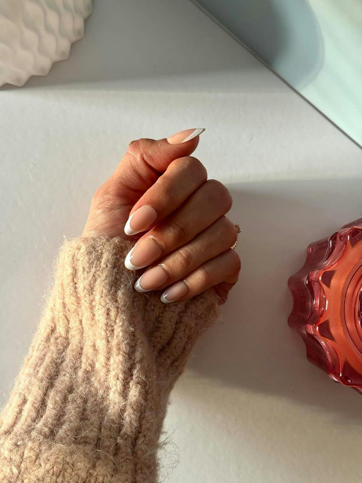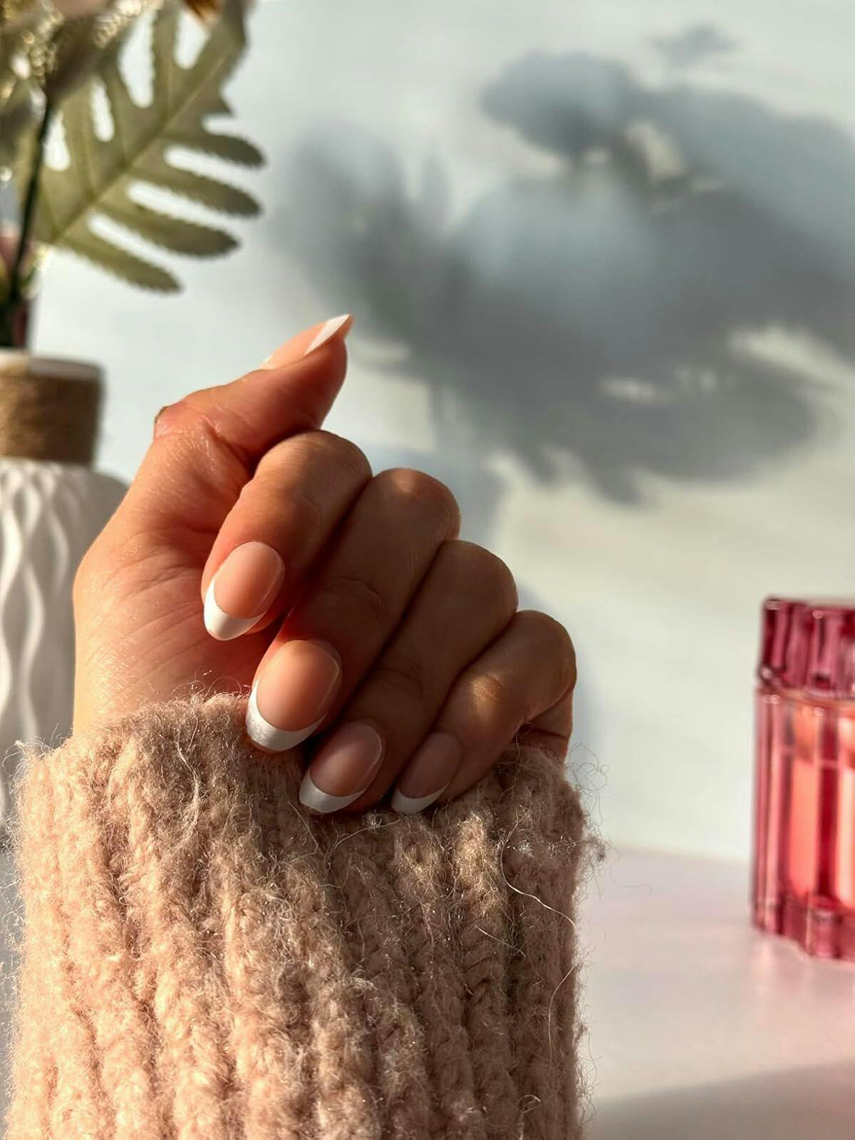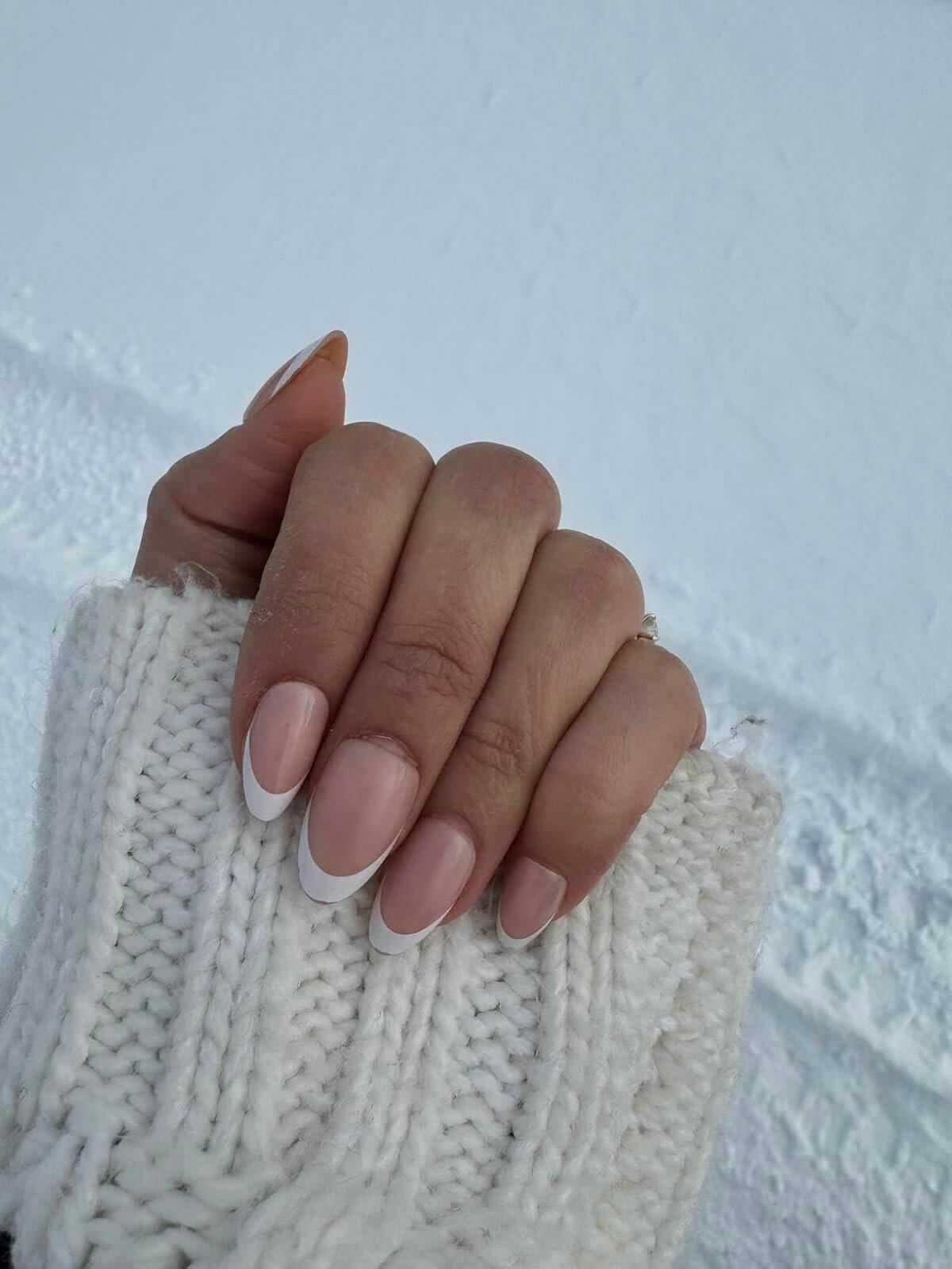 Got the classic french tip. The base is a nudish pink that matches my skin tone perfectly, not too pale or too pink. The gel shine finish is super glossy, looks like salon nails. First time I tried almond shape (I always wore square before) and honestly it’s so feminine and elegant, makes my hands look slimmer. Surprised it doesn’t bother me when typing or texting either. And the purple packaging is cute.