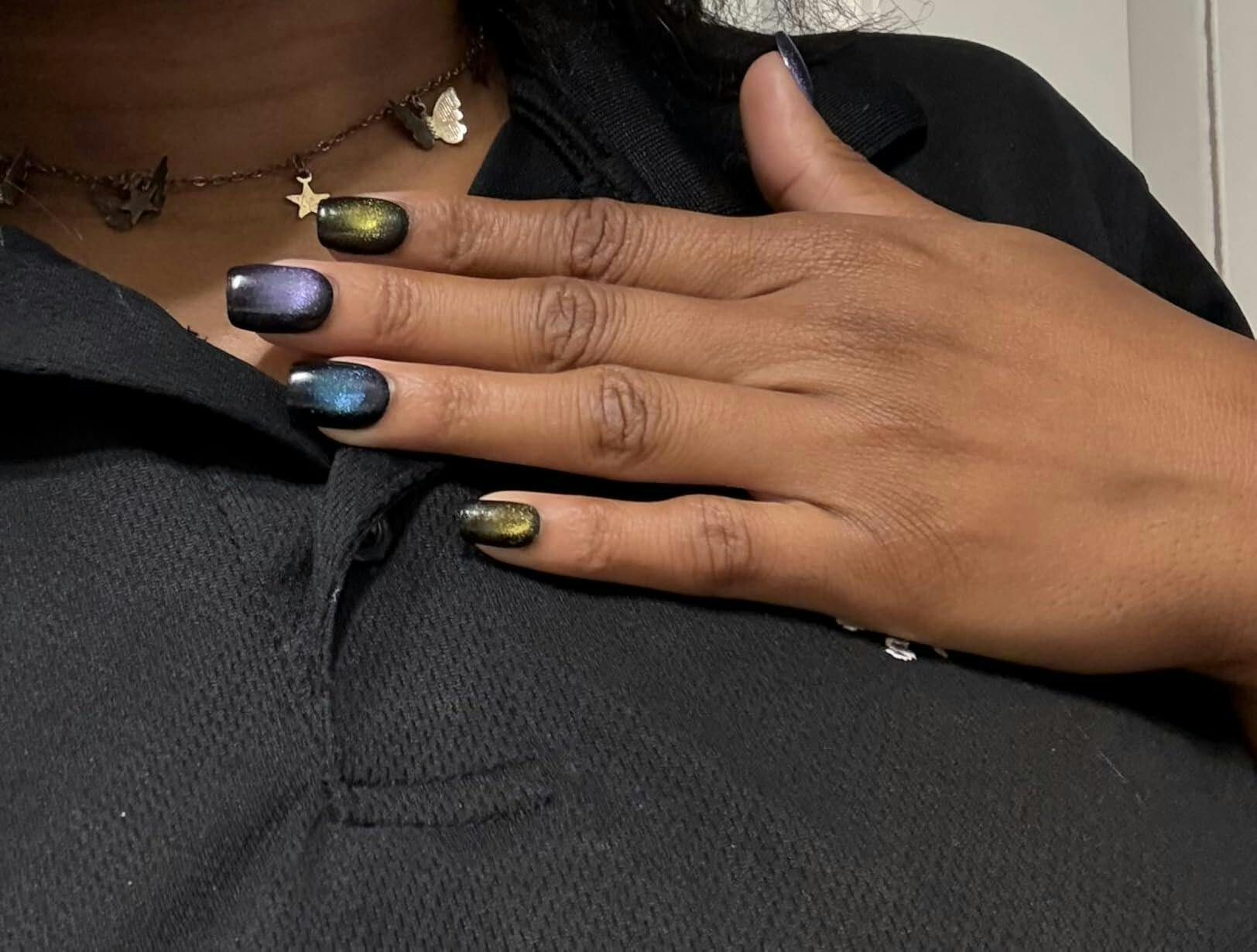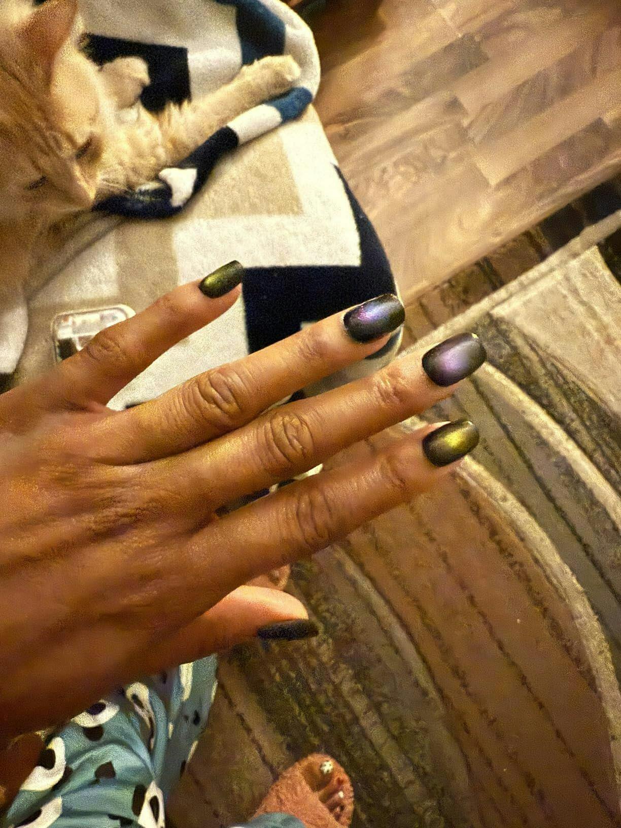 "WOW" effect guaranteed! This dazzling Cat-Eye nail set, inspired by the countless stars of the galaxy, features meticulously hand-brushed nails that deliver a stunning, star-studded sparkle. With 6 vibrant colors in each set, your fingers will shimmer with a range of cosmic hues, while the solid black base enhances the sophistication of the brilliance. Get ready to sparkle up!