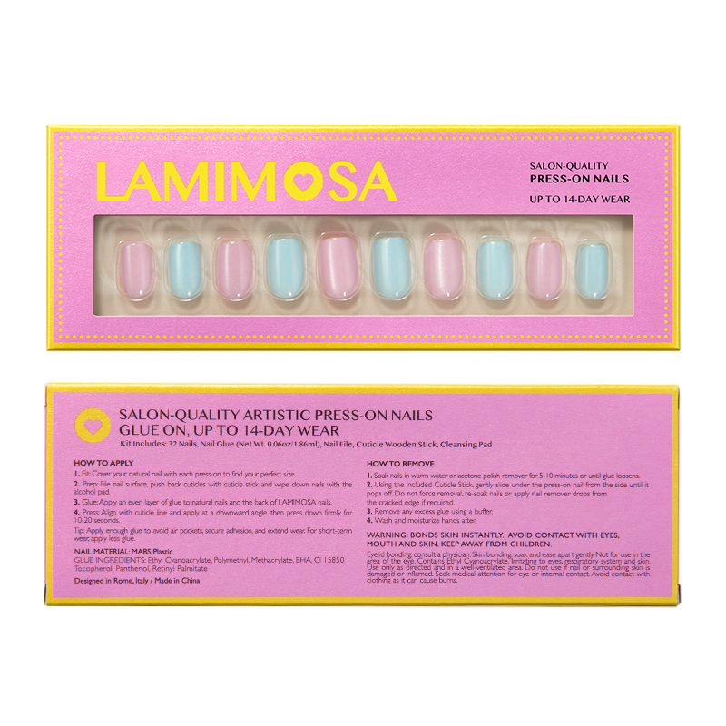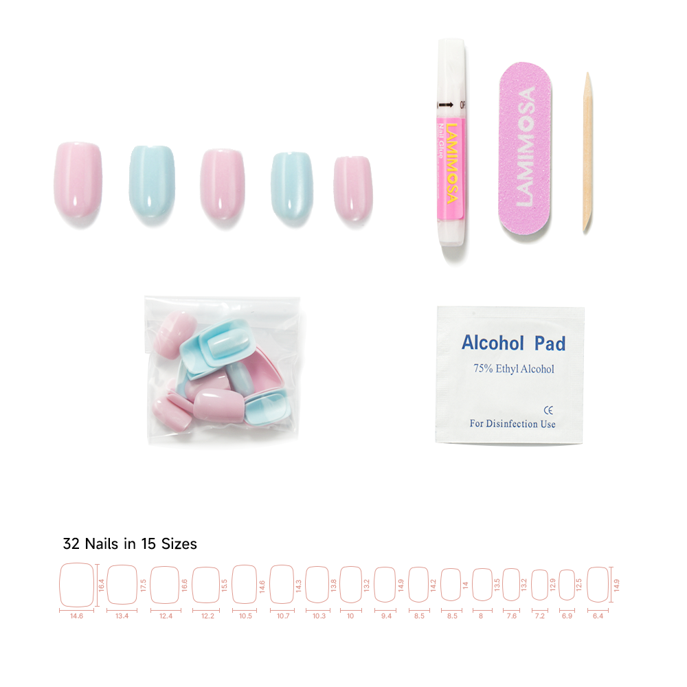 The carefully designed short square shape ensures comfort and convenience for all daily tasks. The nails have a delicate thickness of 0.3 mm at the root for seamless wear, gradually increasing to 1.3 mm at the tip for enhanced durability.
